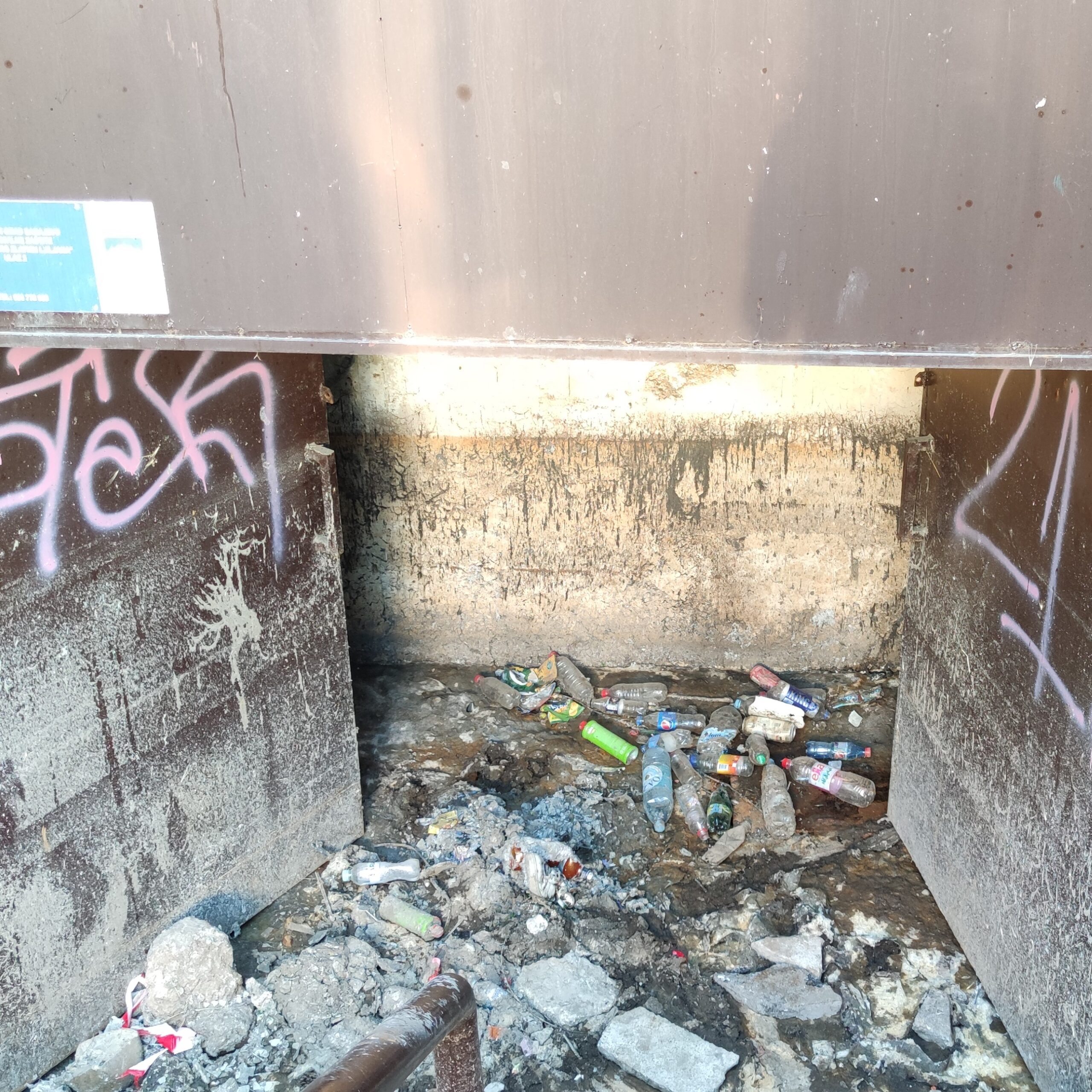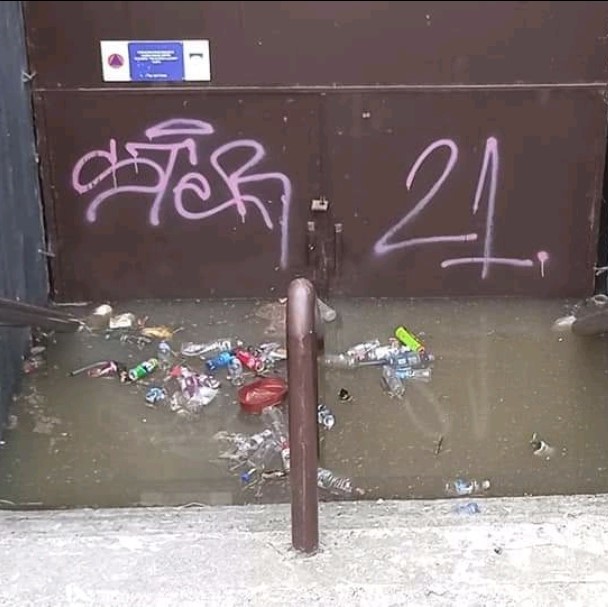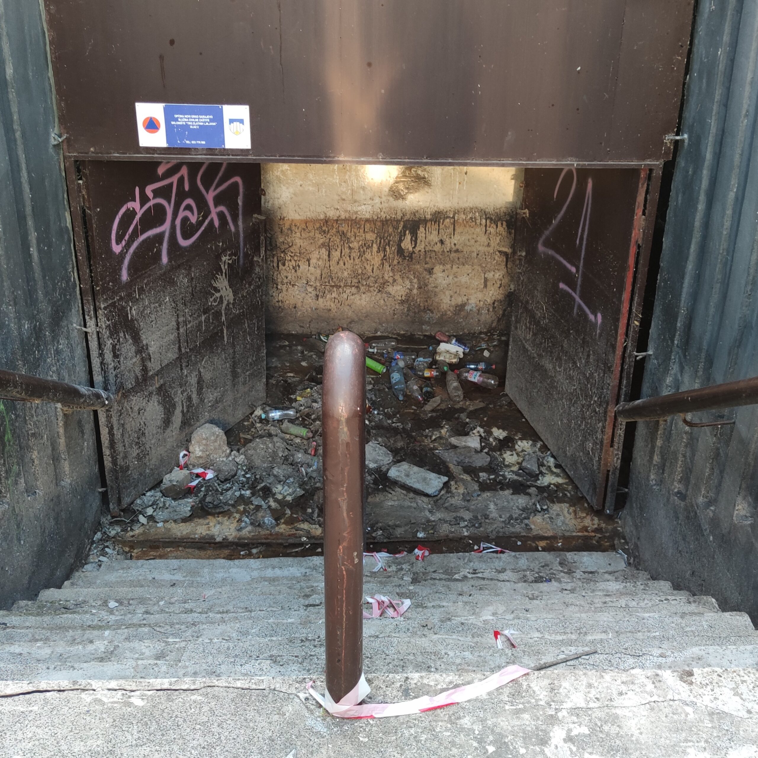 Na slikama je atomsko sklonište u ulici Trg zlatnih ljiljana, centralna lokacija jednog urbanog, masovno naseljenog, prometnog kompleksa stambenih jedinica. Za vrijeme obilnijih padavina, na stepeništu kojim se ulazi u skloniše se zadržava obilna količina vode, vjerovatno zbog neadekvatno rješenih i začepljenih odvoda oborinskih otpadnih voda i ta voda predstavlja leglo fekalnih mikroorganizama i raznih vrsta insekata, i kako stagnira tim dijelom se širi užasan smrad. Nakon povlačenja vode zaostaje mulj, kako na ulasku u samo sklonište tako i kroz sve prostorije skloništa, infektivno blato, pomješano sa otpacima PET, kartonskih ambalaža, opušcima, narkomaskim špricama, zaostalim izlučevinama neodgovornih prolaznika, ekstremno neugodnog mirisa, indikacijom njegove infektivnost i opasnost. Vrata skloništa su na svim ulazima otvorena, dijelom oštećena i neupotrebljiva, tako da je pristup skloništu omogućen i narkomanima, i beskućnicima, i radoznaloj dječici.